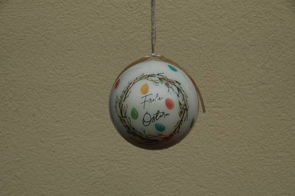 Glückskugel Frohe Ostern mit Eiern und Zweigen